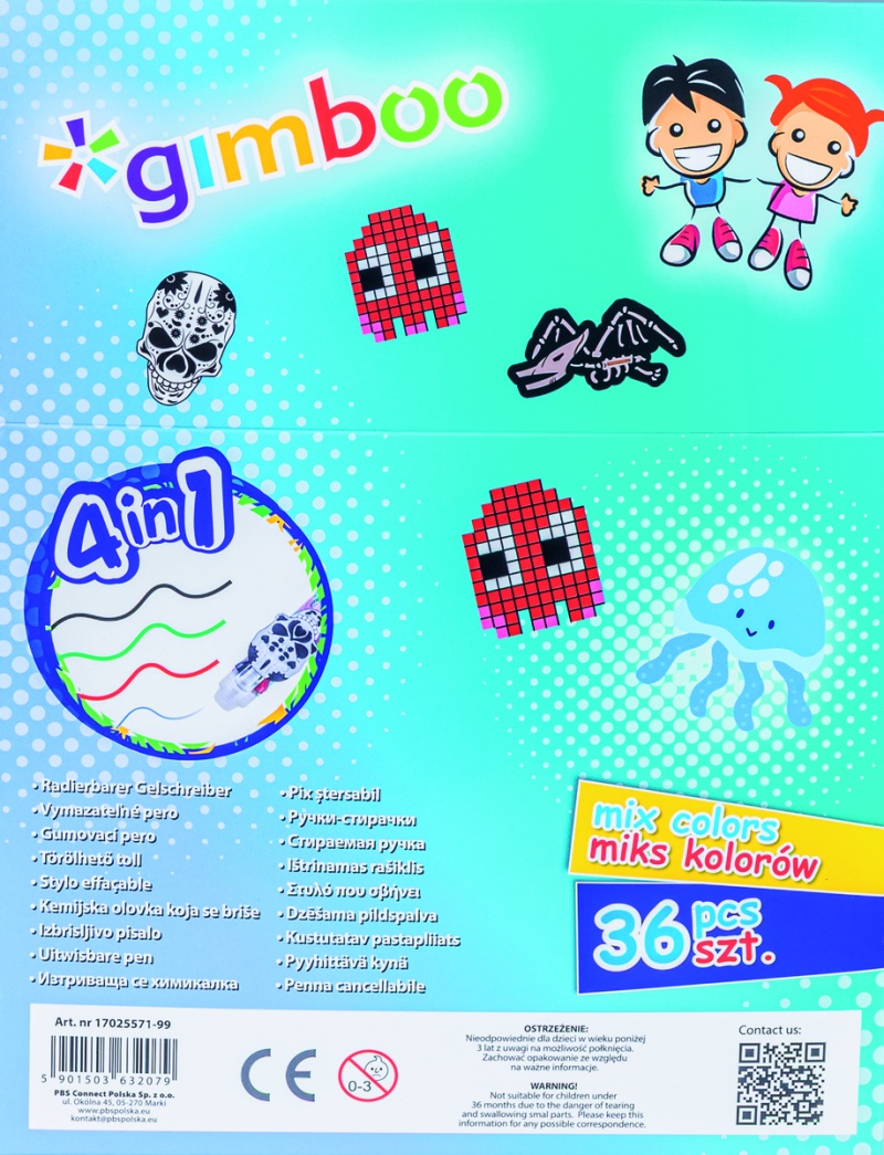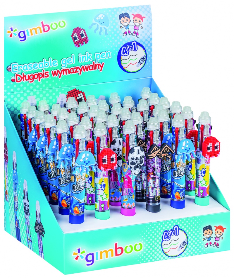 | Nazwa produktu | Długopis wymazywalny GIMBOO 4w1, żelowy, pakowany w displayu, mix kolorów/wzorów |