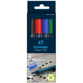 | Nazwa produktu | Zestaw markerów uniwersalnych SCHNEIDER Maxx 130, 1-3 mm, 4 szt., pudełko z zawieszką, mix kolorów |