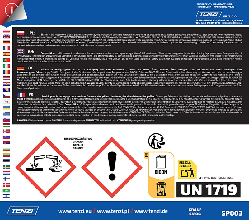 | Nazwa produktu | Koncentrat do usuwania tłuszczu, sadzy, smoły TENZI, Gran Smog, 5l |