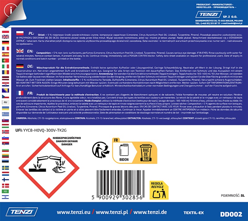 | Nazwa produktu | Preparat do prania wykładzin i tapicerek metodą ekstrakcyjną TENZI, Textil-Ex, 1l |