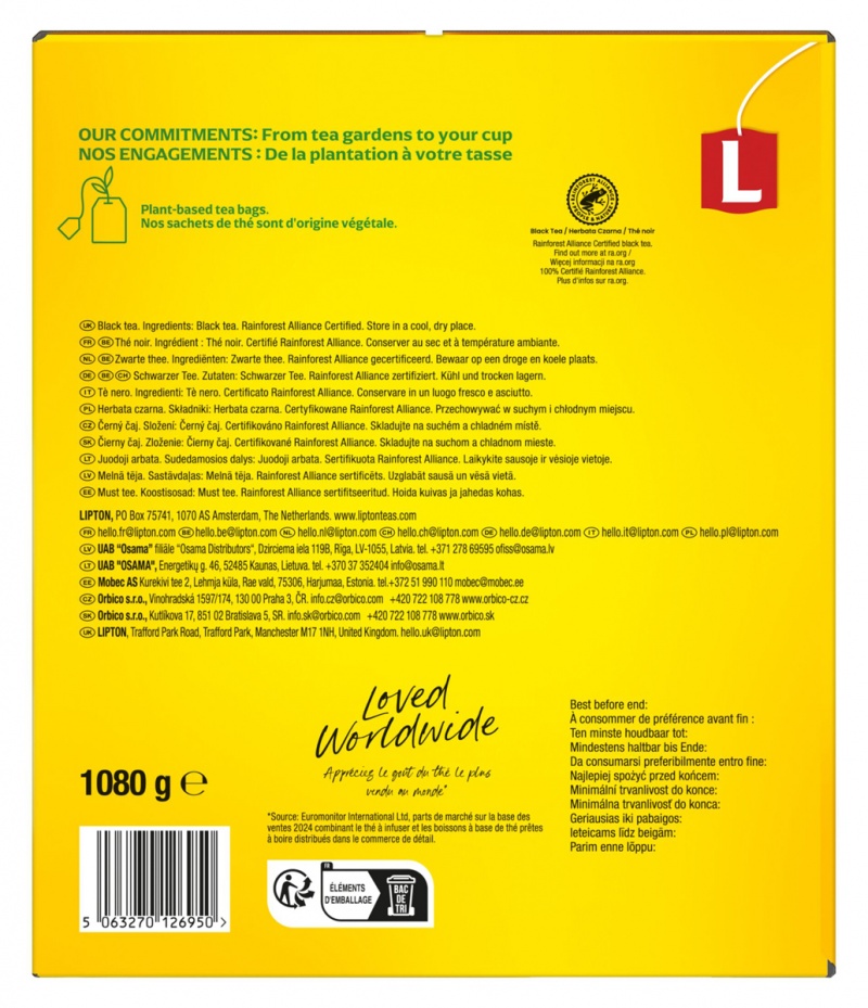 | Nazwa produktu | Herbata LIPTON czarna, Yellow Label, 600 kopert |
