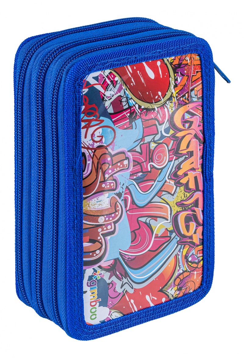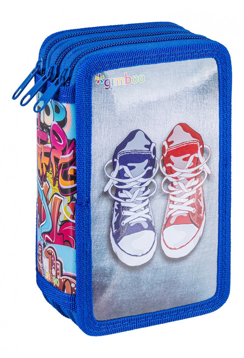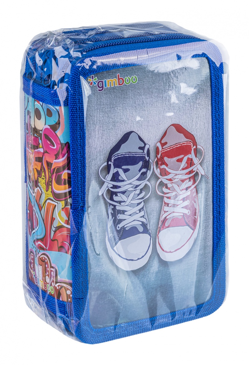 | Nazwa produktu | Piórnik szkolny GIMBOO, z wyposażeniem, 3 komory, graffiti, niebieski |