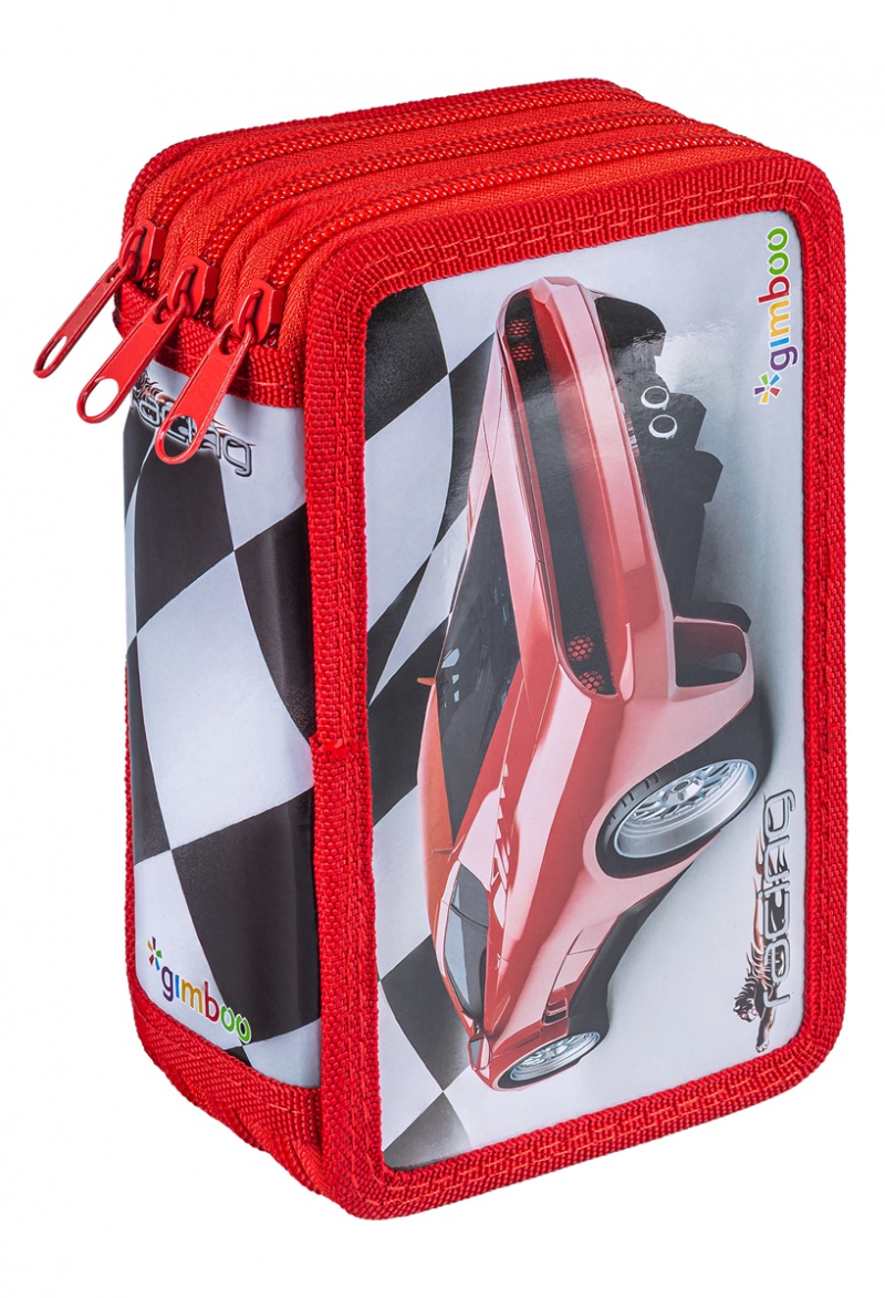 | Nazwa produktu | Piórnik szkolny GIMBOO, z wyposażeniem, 3 komory, wyścigi, czerwony |