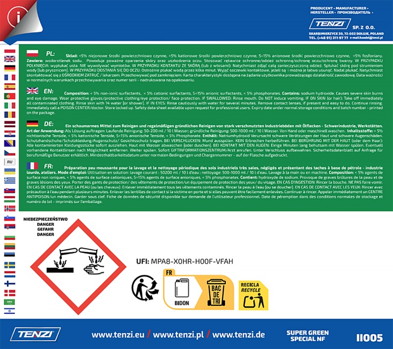 | Product name | Agent for organic dirt TENZI, Super Green Specjal NF, 5l |