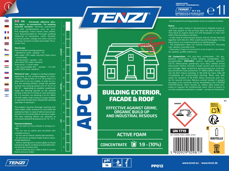 | Product name | Concentrate for cleaning facades, elevations, terraces TENZI, Apc Out, English-language label, 1l |