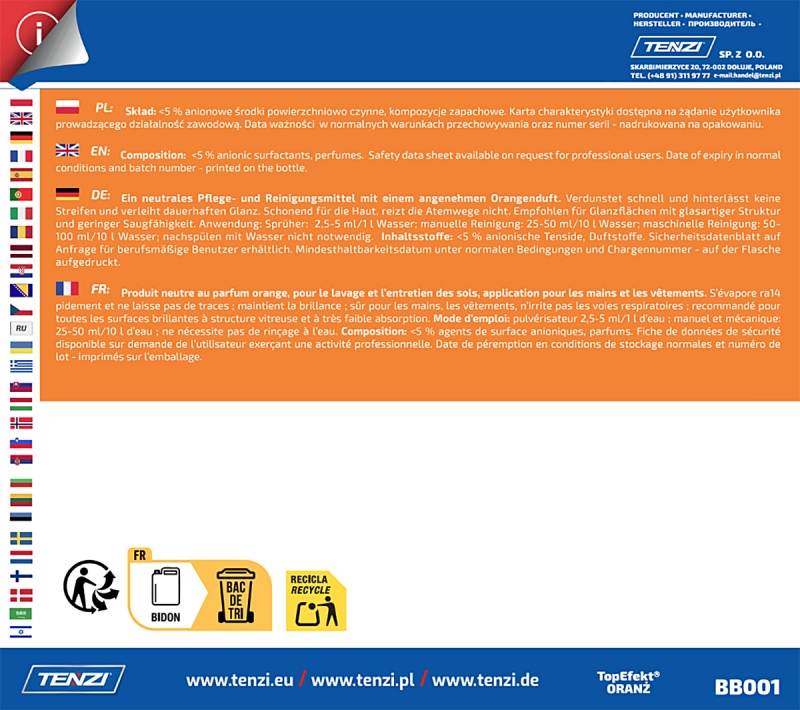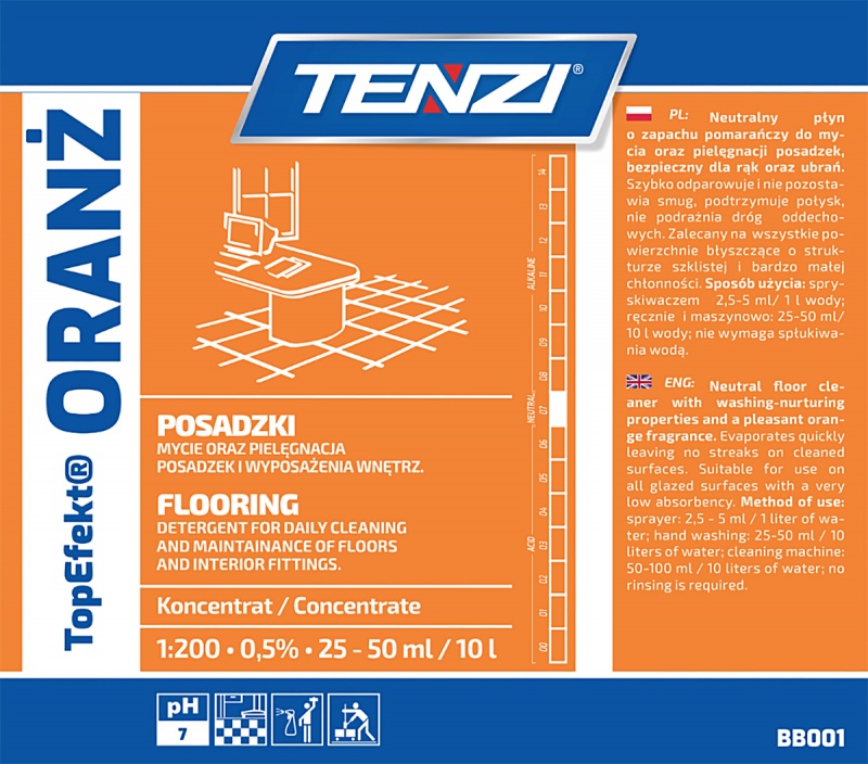 | Product name | Neutral floor cleaner TENZI, Topefekt, orange fragrance, Oranż, 5l |