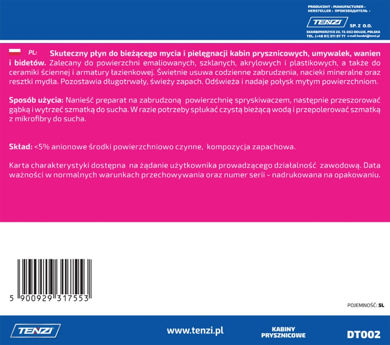 | Product name | Shower cabin cleaner TENZI, 2l |