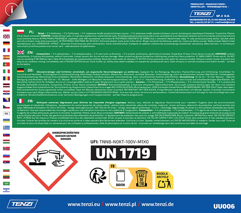 | Product name | Universal degreasing liquid for stain removal TENZI, Brudex, 10l |