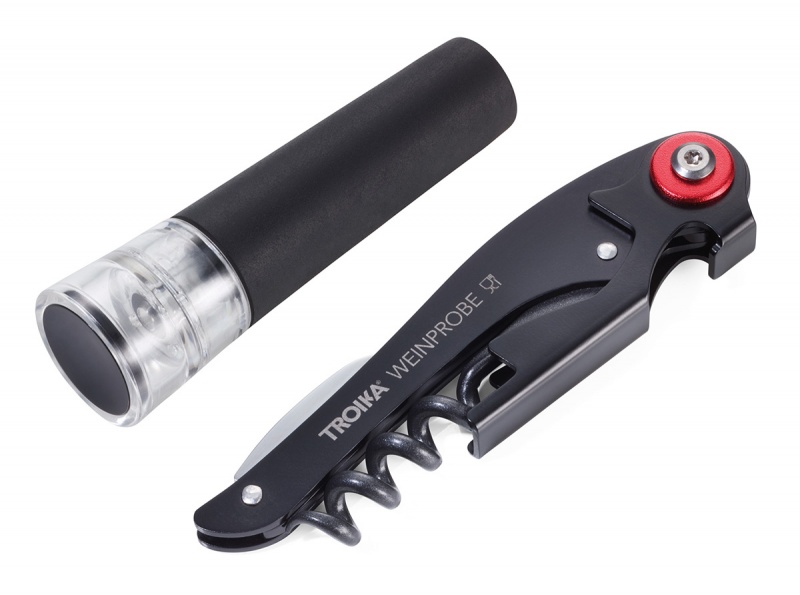 Product name | Wine set TROIKA Weinprobe, corkscrew + knife + stopper, black |