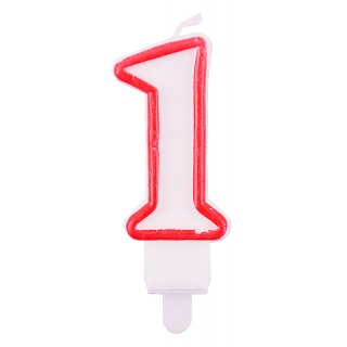 | Product name | Candle PARTY GO, number 1, 9cm, white-red |