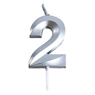 | Product name | Candle PARTY GO, number 2, 4.8cm, silver |