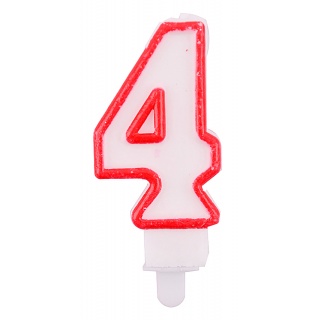 | Product name | Candle PARTY GO, number 4, 9cm, white-red |