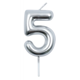 | Product name | Candle PARTY GO, number 5, 6cm, silver |