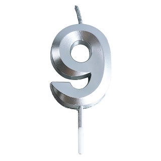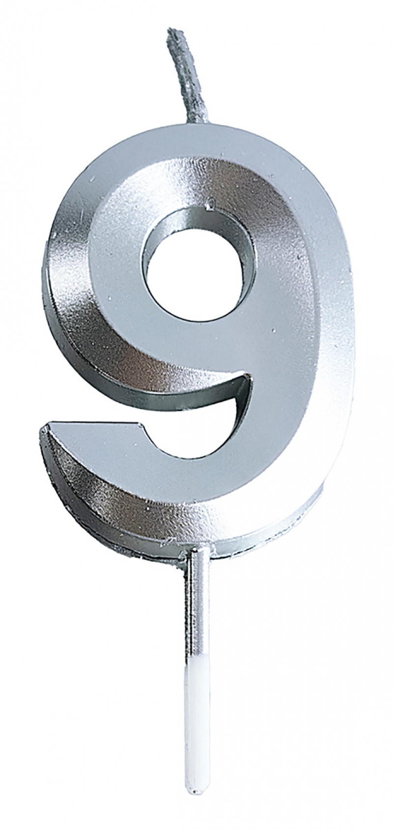| Product name | Candle PARTY GO, number 9, 4.8cm, silver |