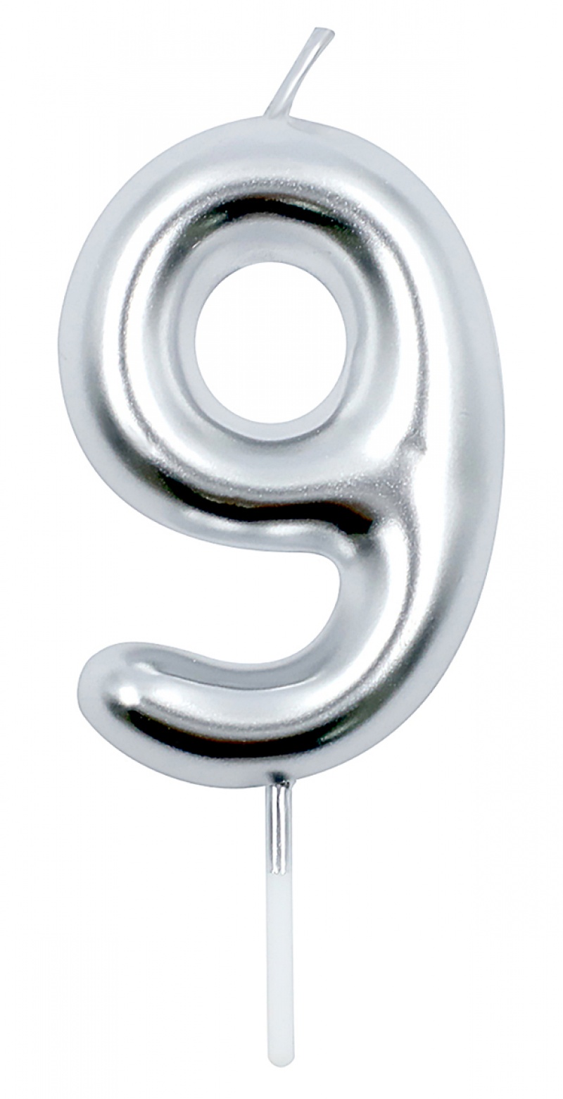 | Product name | Candle PARTY GO, number 9, 6cm, silver |