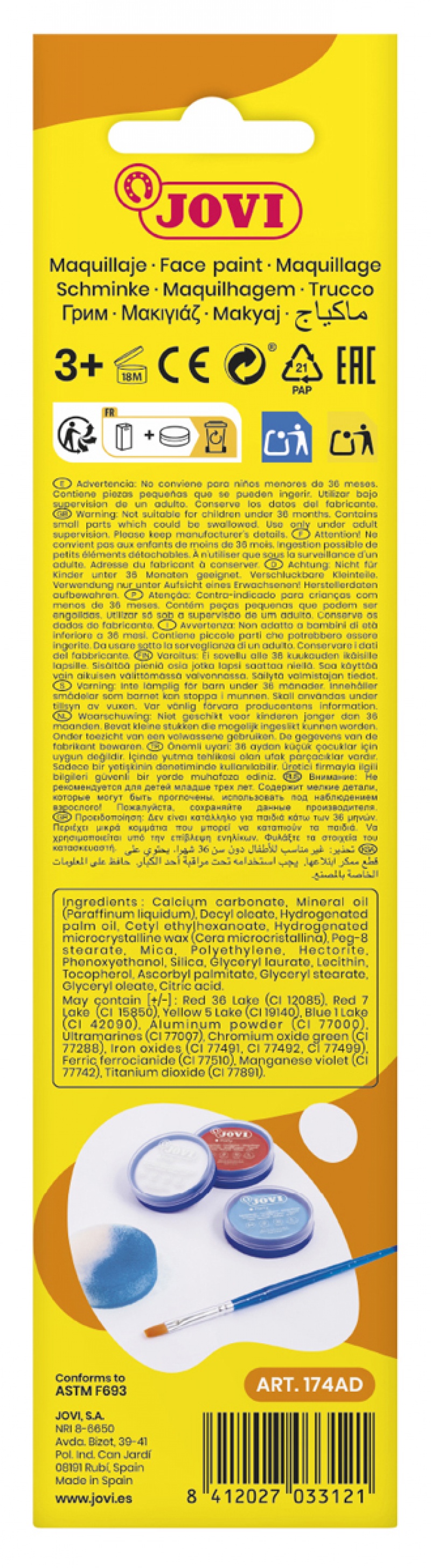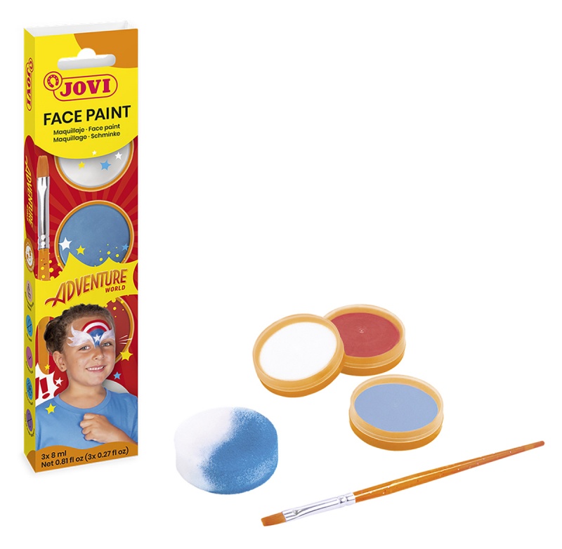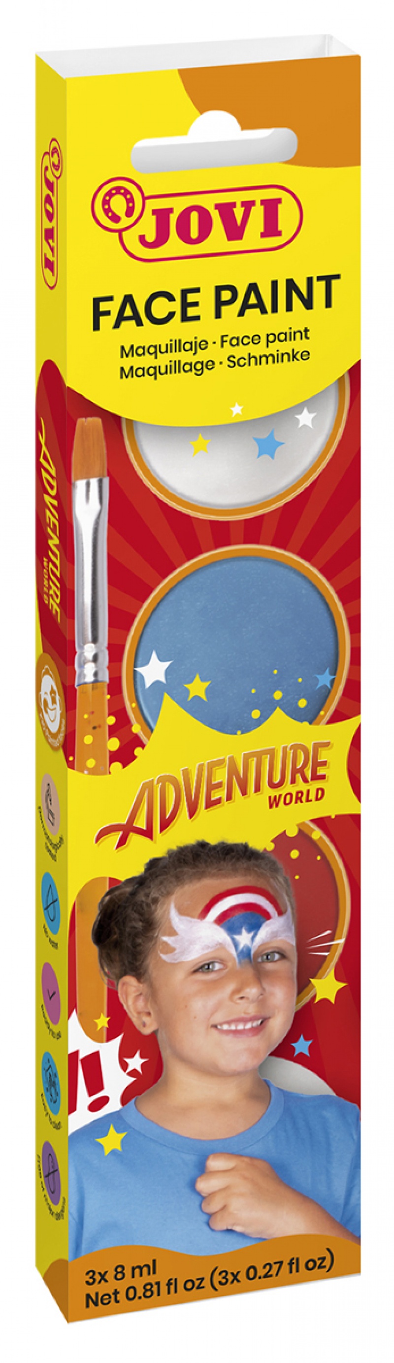 | Product name | Face paints JOVI Adventure, 3x8ml, with brush and sponge, mix of colours |