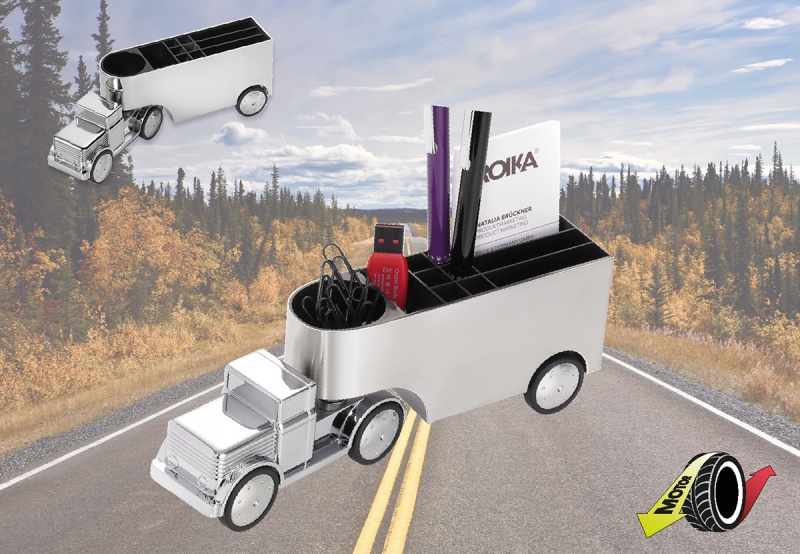 | Nazwa produktu | Przybornik na biurko TROIKA Office Trucker, ciężarówka, chromowany, szary |