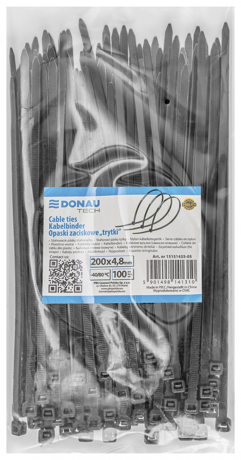 | Nazwa produktu | Opaski zaciskowe/trytytki DONAU TECH, 200x4,8mm, 100szt., temp. -40/80, czarne |