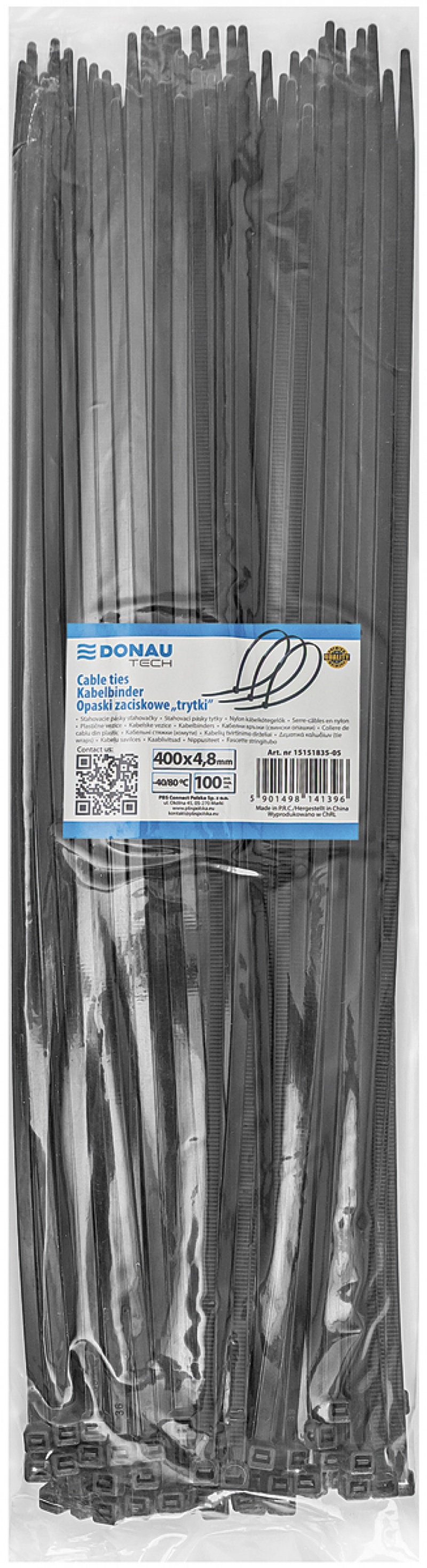 | Nazwa produktu | Opaski zaciskowe/trytytki DONAU TECH, 400x4,8mm, 100szt., temp. -40/80, czarne |