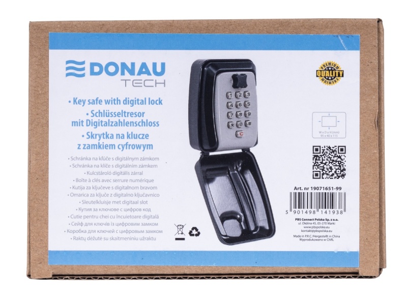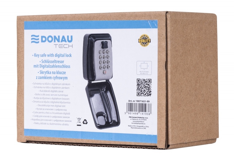 | Nazwa produktu | Skrytka na klucze DONAU TECH, z zamkiem cyfrowym, 115x95x40 mm, czarno-srebrna |