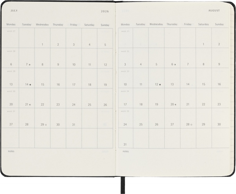 | Nazwa produktu | Kalendarz tygodniowy vertykalny MOLESKINE 2026, 12M, P, twarda oprawa, 9x14cm, czarny |