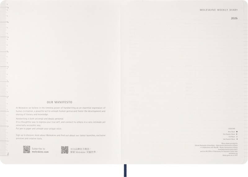| Nazwa produktu | Kalendarz tygodniowy vertykalny MOLESKINE 2026, 15M, XXL, miękka oprawa, 23,5x28cm, sapphire blue |